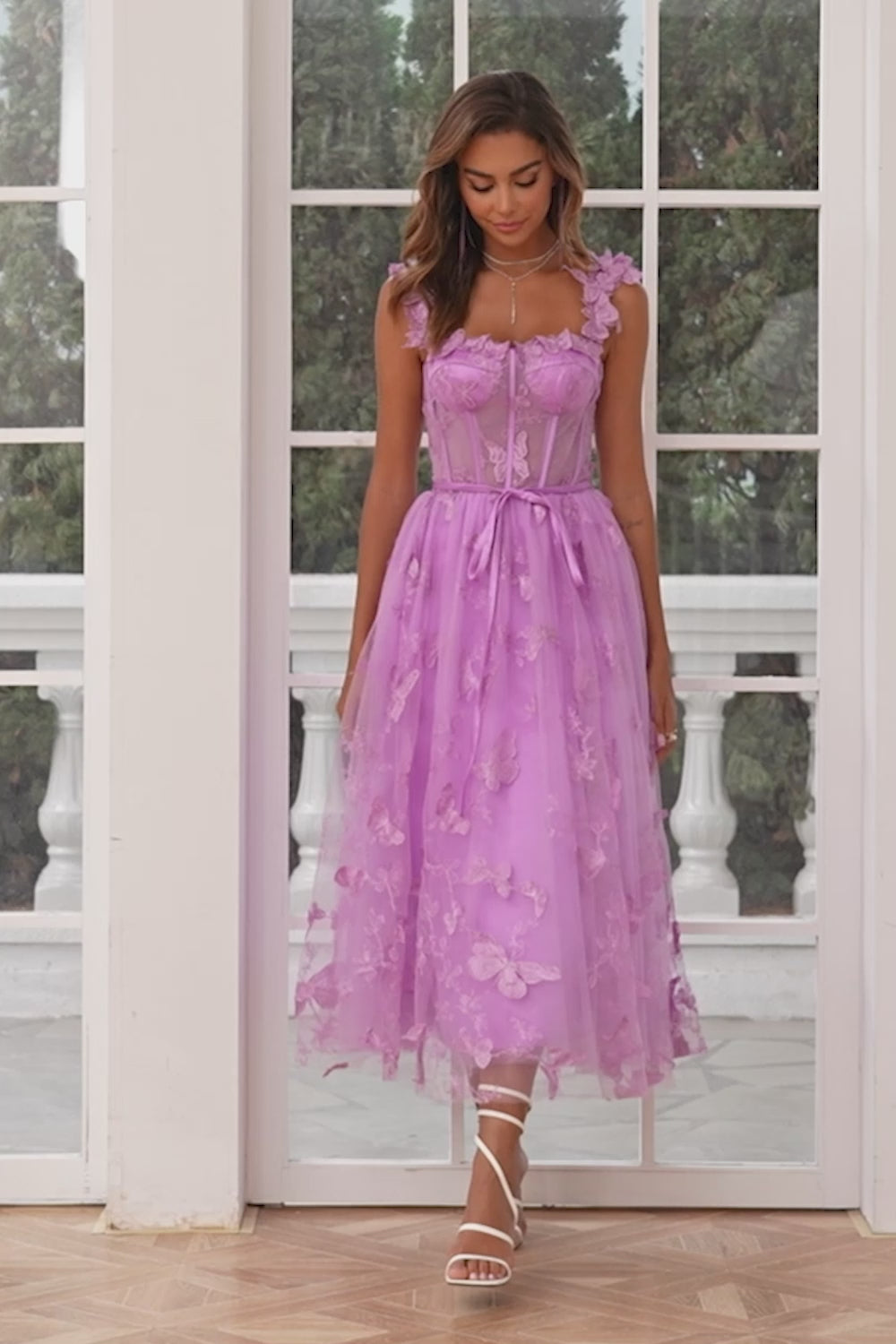Leah Aline Lilac Corset Tulle Midi Prom Dress With 3d Butterflies Kissprom